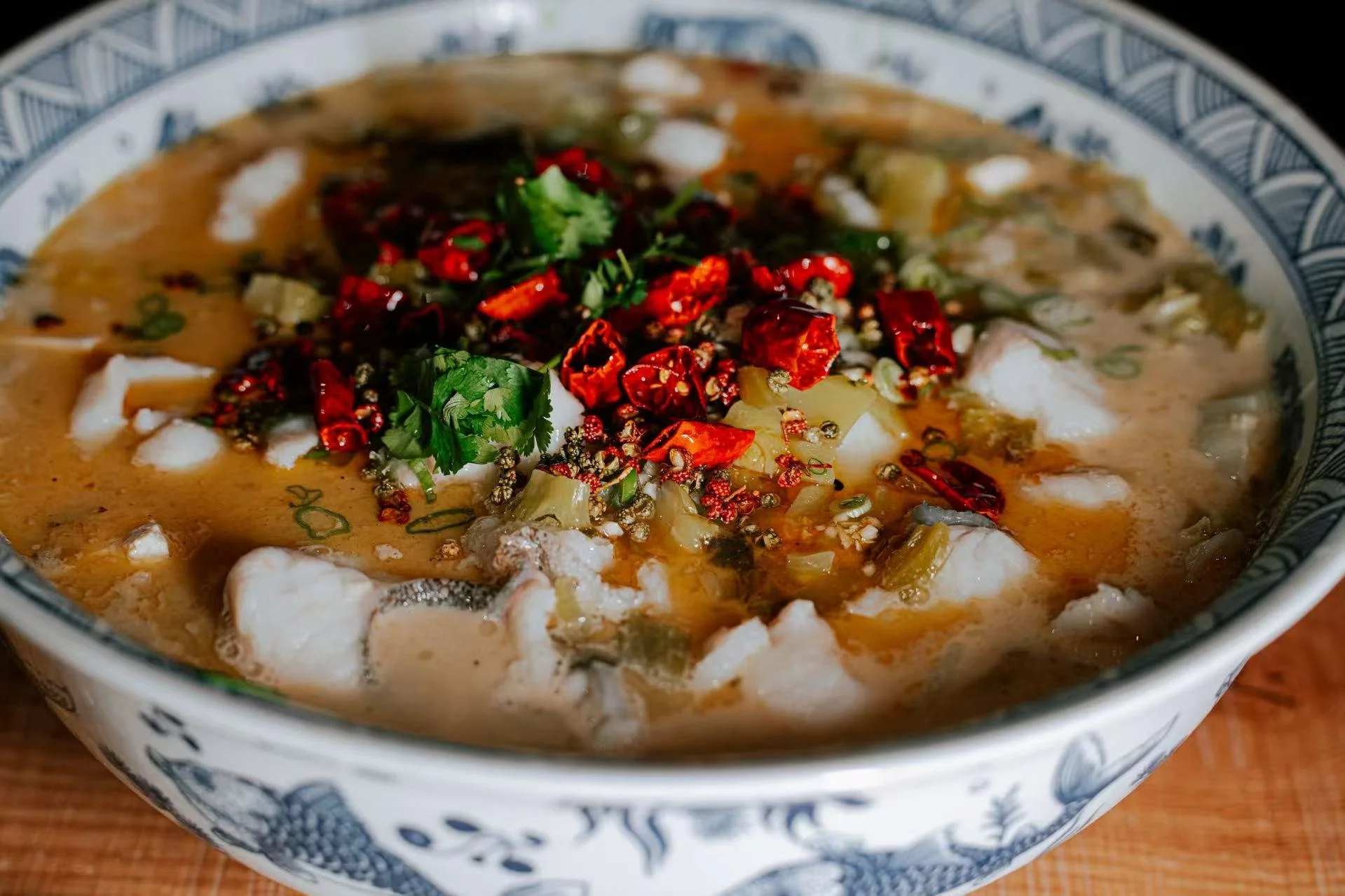 The dishes at our restaurant are based on the foundation of umami (Japanese definition of ‘savoury’) which drives the taste as you can still experience the balance with sweetness. The inventiveness and playfulness of the cuisine is the authentic use of charcoal for grilling with Sichuan spices, along with the traditional Cantonese style of steaming fish in between chopsticks as a method for steam to escape.